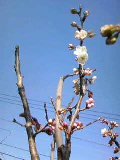 といってもこれはさくらんぼの花なので、普通の桜より早いのですが。今朝はまだ蕾も堅い感じだったのに日中の暖かさでだいぶふくらんだみたいです。