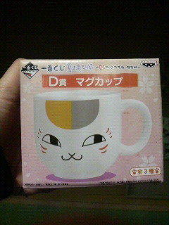 コンビニの一番くじで、ニャンコ先生がでていて、どの商品でもよさげだったので、やってみたらマグカップが当たりました。ひゃっほーい☆