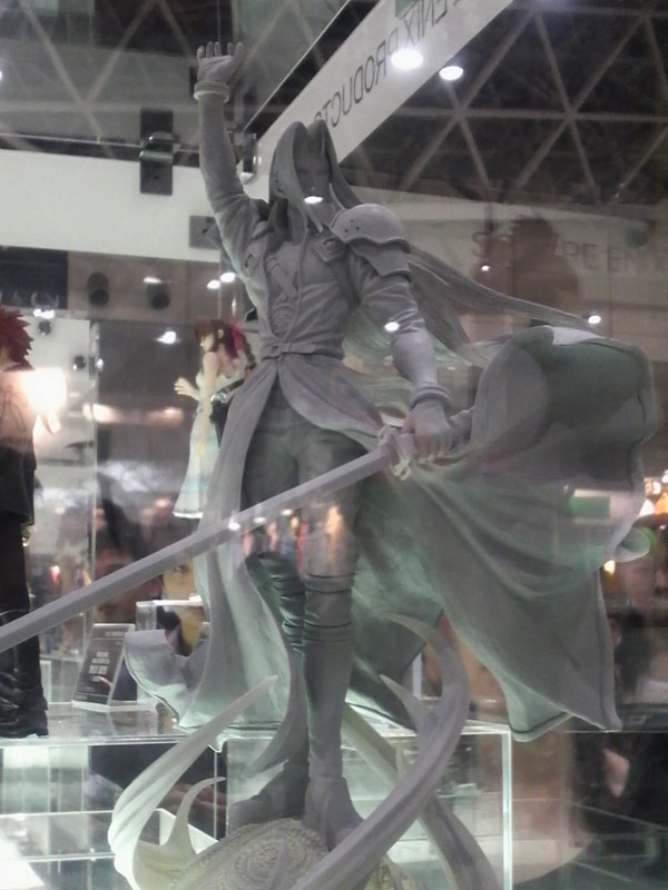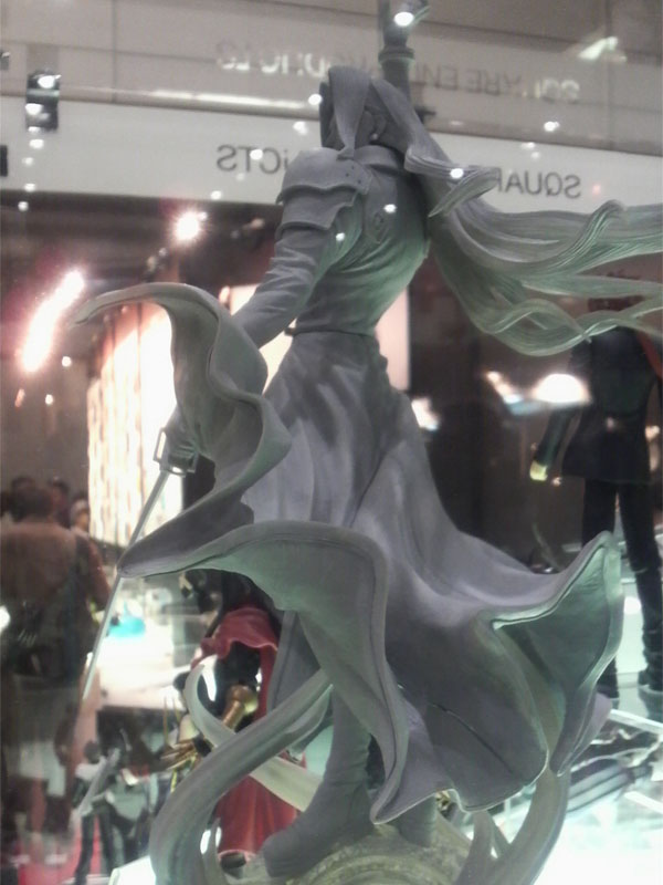 そうこう言ってるうちに列が進んで、こっちはFFフィギアの展示。ここにも彩色されていないセフィロスがいたんですが。後ろ姿がまたいやに作り込まれているようで(でもあまりにひらひらしすぎてクラゲ疑惑浮上。やっぱり海産類か!)とても美しいんですよ。