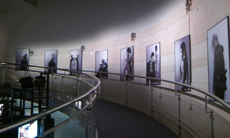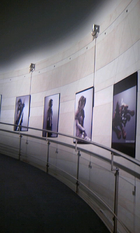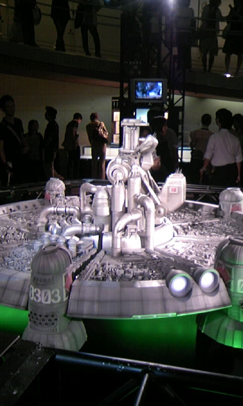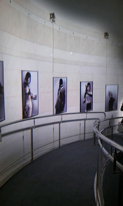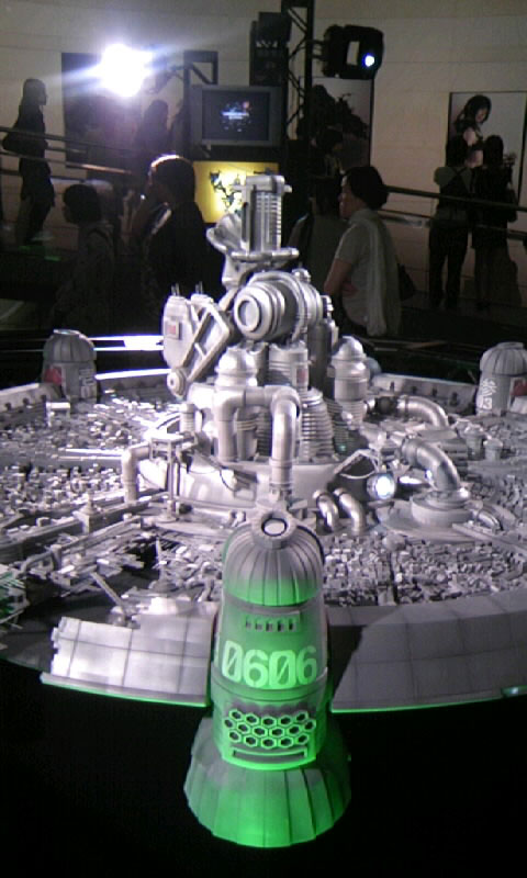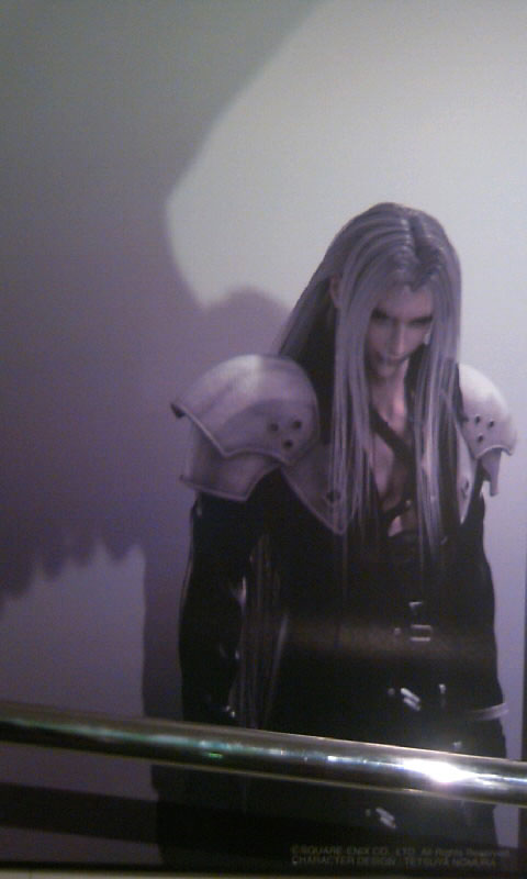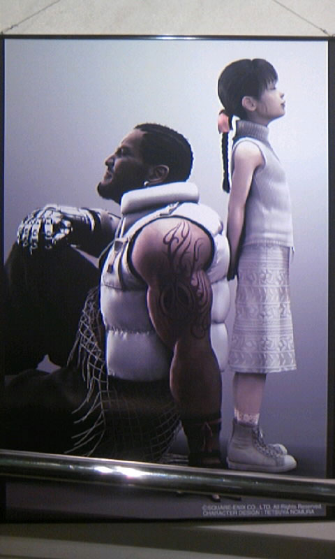 さて。物販コーナーを抜け、中に入ると、中央にミッドガルの模型、その奥にでかいモニターでPV上映中。ぐるっとスロープ上になっているところにキャラクターのポスター?が。うはー、すげー壮観!全体像を取らなかったのを帰ってきて後悔しました。