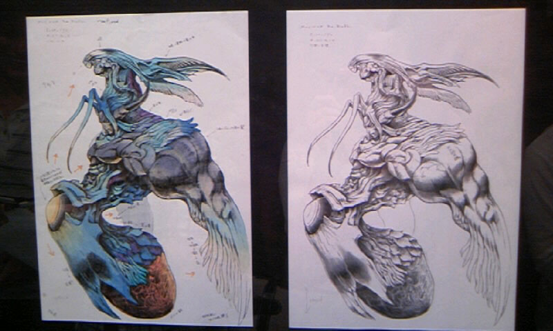 と思わずにいられなかったセーファーセフィロスのラフ&完成図。きれいです。あー、あの足は羽だったんだー・・・つか、足じゃないんだねー・・・・PS3でFF7リメイクが出たら、きっときれいなセフィロスと戦えるんですね・・・・イカじゃないよね!きっと!(大笑)