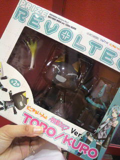 発売というかプライズとして出回るってのはずいぶん前から知ってた。そして予約し損ねたんだ。なので、軽い気持ちでチャレンジしたらとれちゃったんだよ。クロだけ。・・・・トロはかなりがんばりましたがむりでした。てか、これ荷物になるじゃんか・・・クロェ・・・。