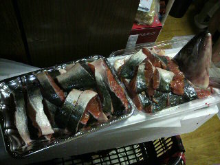 購入した鮭。届いた箱もでかかったが、中身もものすごいでかかった・・・。さばいてもこんだけあったんだよ。すごいよね。